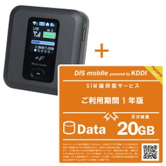 DIS mobile [PKGAUD20G1YF3] DIS mobile powered by KDDI 年間パックDATA 20GB 新規1年+FS030Wルーター付