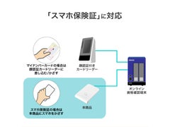 ■USB接続型の非接触ICカードリーダライターです。確定申告(e-Tax、eLTAX)やマイナンバーカードを利用した各種行政手続きにご活用いただけます。添付のカードホルダーを使用することで、ICカードの読み込み時のカードずれを防ぎ、通信を安定させることが可能です。■動作確認済みICカードはアイ・オー・データ機器商品ページに記載の一覧表をご覧ください。関連情報は各省庁のWebサイトをご確認ください。■今後、若年層を中心にiPhoneやAndroidの「スマホ保険証」利用者が増えると予想されることから、医療機関ではその環境整備が不可欠です。本商品は、「スマホ保険証」に対応し、各社顔認証付きカードリーダーと動作確認済みであるため、スムーズかつ安心して導入いただけます。■電子処方箋は、これまで紙で発行されていた処方箋を電子化したもので、複数の医療機関・薬局をまたがる過去のお薬情報に基づいた医療を受けられるようになります。ICカードリーダーライターは医師資格証と薬剤師資格証の情報の読み取り・電子署名時に使用されます。