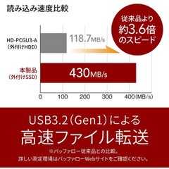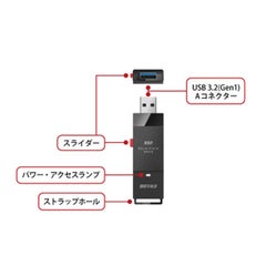 ■SSDのデータを抹消して情報漏洩をブロックするソフト「データ消去ユーティリティー」対応 ■USB3.2(Gen1)対応でデータアクセスも快適 ■USBコネクタを痛めないキャップレス・スライド式、持運び時のキャップの紛失無し、ケーブル不要で直接つながる ■テレビ録画に対応 ■PlayStation 5、PlayStation 4、対応「プレイステーションかんたん接続マニュアル」を付属 ■米国規格MIL-STD準拠の耐衝撃 ■安心・簡単暗号化「SecureLock Mobile2」 ●インターフェース:USB 3.2(Gen 1)/3.1(Gen 1)/3.0/2.0 ●端子形状:Type-A ●電源:USBバスパワー ●本体寸法:23×11×68.2mm ●本体質量:約17g ●付属品:取扱説明書(保証書)