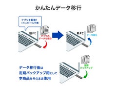 ■データ移行アプリ「Sync Connect+ データ移行マネージャー」を内蔵したスティックSSDです。旧PCから新PCへのデータ移行を簡単に行うことができます。データ移行後は、バックアップ用SSDとしてそのままご使用いただけます。読み込み速度は最大500MB/sと高速です。■2025年10月14日にマイクロソフト社のWindows 10のサポートが終了します。サポート終了後は不具合修正や脆弱性のセキュリティ修正、トラブルが起きた時のテクニカルサポートなどが実施されなくなります。そのため、サポート終了前にWindows 11へのアップデートが必要です。■データ移行アプリ「Sync Connect+ データ移行マネージャー」が内蔵されています。旧PCへのアプリダウンロードは不要、直感的に操作できる画面で、旧PCから新PCへのデータ移行が簡単に行えます。データ移行後は、定期バックアップ用としてそのままご使用いただけます。■「Sync Connect+ データ移行マネージャー」を使用すると、通常のファイルコピーよりも高速なバックアップが可能です。完了までの待ち時間が減り、より効率よくデータ移行を進めることができます。