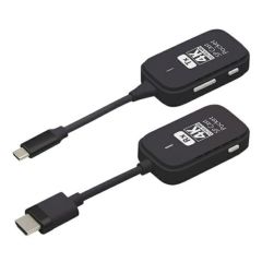 画面出力対応のUSB-Cポートを備えた機器の映像をワイヤレスでHDMIモニターに複製/拡張(※)出力が可能。独立したワイヤレス接続なのでネット環境がない場所でも設置が可能。ソフトウェアのインストール不要。本体を接続するだけですぐに使用が可能。HDCP対応で様々な映像コンテンツを大勢で楽しめる!最大表示解像度は3840×2160(4K)に対応。受信機1台に対して最大7台の送信機を増設可能。複数の送信機からの映像を切り替えて出力可能。USB-C版はマルチプラットフォーム対応(iOS/iPadOS/Android/Windows/macOS/ChromeOS)