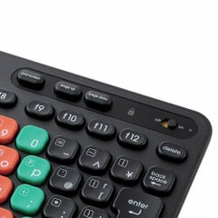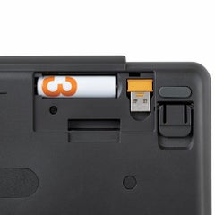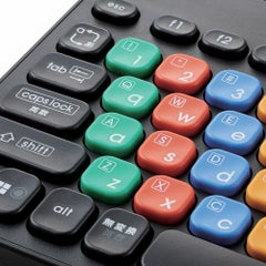 ■正しいキー入力が楽しく覚えられる、パソコン学習用キーボード“KEY PALETTO(キーパレット)”です。 ■コネクター形状:USB-A プラグ ■接続方式:USB 2.4GHz無線 ■対応機種:USBポートを装備したWindowsパソコン、Chromebook ■対応OS:Windows 11/10、ChromeOS ■通信方式:GFSK方式 ■電波周波数:2.4GHz帯 ■電波到達距離:最長約10m ※ご使用環境により異なる場合があります。 ■キー配列:日本語配列 ■キー数:84キー ■キータイプ:メンブレン ■キーピッチ:17mm ■キーストローク:2.5mm ■レシーバー収納:対応 ■電源:単3形アルカリ乾電池、単3形マンガン乾電池、単3形ニッケル水素2次電池のいずれか1本 ■電池寿命:最長約2年(アルカリ乾電池使用時の目安) ■サイズ分類:ミニサイズ ■外形寸法:約幅267×奥行136×高さ23mm(スタンド含まず)、約幅267×奥行136×高さ33mm(スタンド時) ■重量:約310g ※電池含まず ■レシーバー・外形寸法:約幅20×奥行16×高さ6.5mm ■レシーバー・重量:約2g ■内容物:キーボード本体×1台、レシーバー×1個、動作確認用単3形アルカリ乾電池×1本、ローマ字入力サポートカード×1枚、よみがなシール×1枚 ■カラー:ブラック ■保証期間:1年間