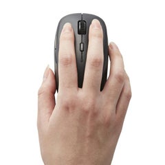 ■ネットの閲覧などの操作に便利な「進む」・「戻る」ボタンが付いた5ボタンワイヤレスBlueLEDマウス。 ■インターフェース:USB ■コネクター形状:USB(A)オス ■対応機種:USBポートを装備したWindows OS、macOS搭載機 ■対応OS:Windows 11/10/RT8.1/8.1/7、OS X 10.11~macOS 10.15 ■分解能:1000/1500/2000(切り替え可能) ■通信方式:GFSK方式 ■電波周波数:2.4GHz帯 ■読み取り方式:光学センサー方式 ■LED色:ブルー ■ボタン数:5個 ※ホイールボタン含む ■ホイール数:1個 ■レシーバー収納:○ ■連続動作時間:約235時間 ■連続待機時間:約416日 ■想定電池使用期間:約406日 ※1日8時間のパソコン操作中5%をマウス操作に割り当てた場合 ■電源(本体):単3形アルカリ乾電池、単3形マンガン乾電池、単3形ニッケル水素電池のいずれか1本 ■定格電圧(本体):1.5V ■カラー:ブラック ■外形寸法(マウス本体):幅56.0×奥行98.0×高さ34.3mm ■重量(マウス本体):約56g ※電池を含まず ■外形寸法(レシーバー):幅18.0×奥行13.1×高さ5.7mm ■重量(レシーバー):約2g ■付属品:動作確認用単3形アルカリ乾電池×1、ユーザーズマニュアル×1 ■保証期間:6カ月間 ■サイズ分類:Mサイズ