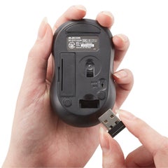 ■リーズナブルながら快適な操作性を実現したコンパクトサイズのワイヤレスマウス。 ■インターフェース:USB ■コネクター形状:USB-Aプラグ ■対応機種:USBポートを装備したWindows OS、macOS搭載機 ■対応OS:Windows 11/10/RT8.1/8.1/7(SP1)/Vista(SP2)/XP(SP3)、macOS 10.15~10.12/OS X 10.11 ■分解能:1000カウント ■通信方式:GFSK方式 ■電波周波数:2.4GHz帯 ■読み取り方式:光学センサー方式 ■LED色:レッド ■ボタン数:3個 ※ホイールボタン含む ■ホイール数:1個 ■レシーバー収納:○ ■連続動作時間:約94時間 ■連続待機時間:約750日 ■想定電池使用期間:約215日 ※1日8時間のパソコン操作中5%をマウス操作に割り当てた場合 ■電源(本体):単4形アルカリ乾電池、単4形マンガン乾電池、単4形ニッケル水素電池のいずれか1本 ■定格電圧(本体):1.5V ■カラー:ブラック ■外形寸法(マウス本体):幅51.0×奥行84.0×高さ35.9mm ■重量(マウス本体):約47.5g ※電池を含まず ■外形寸法(レシーバー):幅18.0×奥行15.0×高さ6.3mm ■重量(レシーバー):約2g ■付属品:動作確認用単4形アルカリ乾電池×1、ユーザーズマニュアル×1 ■保証期間:6カ月間 ■サイズ分類:Sサイズ