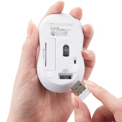■リーズナブルながら快適な操作性を実現したコンパクトサイズのワイヤレスマウス。 ■インターフェース:USB ■コネクター形状:USB-Aプラグ ■対応機種:USBポートを装備したWindows OS、macOS搭載機 ■対応OS:Windows 11/10/RT8.1/8.1/7(SP1)/Vista(SP2)/XP(SP3)、macOS 10.15~10.12/OS X 10.11 ■分解能:1000カウント ■通信方式:GFSK方式 ■電波周波数:2.4GHz帯 ■読み取り方式:光学センサー方式 ■LED色:レッド ■ボタン数:3個 ※ホイールボタン含む ■ホイール数:1個 ■レシーバー収納:○ ■連続動作時間:約94時間 ■連続待機時間:約750日 ■想定電池使用期間:約215日 ※1日8時間のパソコン操作中5%をマウス操作に割り当てた場合 ■電源(本体):単4形アルカリ乾電池、単4形マンガン乾電池、単4形ニッケル水素電池のいずれか1本 ■定格電圧(本体):1.5V ■カラー:ホワイト ■外形寸法(マウス本体):幅51.0×奥行84.0×高さ35.9mm ■重量(マウス本体):約47.5g ※電池を含まず ■外形寸法(レシーバー):幅18.0×奥行15.0×高さ6.3mm ■重量(レシーバー):約2g ■付属品:動作確認用単4形アルカリ乾電池×1、ユーザーズマニュアル×1 ■保証期間:6カ月間 ■サイズ分類:Sサイズ