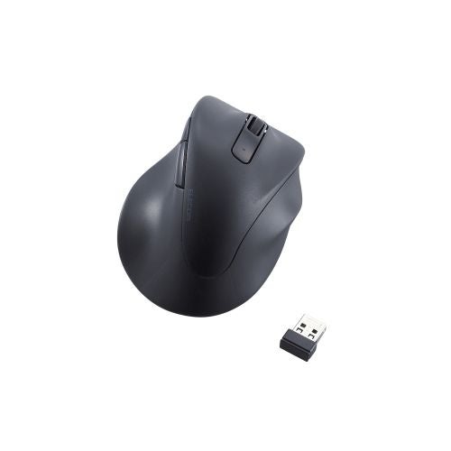 ■医師との共同開発により究極の握り心地を実現した5ボタンマウス“EX-G”。 ■コネクター形状:USB-A プラグ ■接続方式:USB2.4GHz無線 ■対応機種:USBポートを装備したWindows OS、macOS、ChromeOS 搭載機 ■対応OS(Windows):Windows 11/10 ■対応OS(macOS):macOS Sonoma 14/macOS Ventura 13 ■対応OS(その他):ChromeOS ■通信方式:GFSK方式 ■電波周波数:2.4GHz帯 ■電波到達距離:最長約10m ※ご使用環境により異なる場合があります。 ■読み取り方式:BlueLED ■センサー分解能:2000DPI ■ボタン数:5個 ※ホイールボタン含む ■ホイール数:1個 ■レシーバー収納:対応 ■電源:単3形アルカリ乾電池、単3形マンガン乾電池、単3形ニッケル水素電池のいずれか1本 ■電池寿命:最長約23カ月(アルカリ乾電池使用時の目安) ※ご使用状況により異なる場合があります。 ■サイズ分類:Mサイズ ■外形寸法:幅約75mm×奥行約114mm×高さ約55mm ■外形寸法(レシーバー):幅約15mm×奥行約20mm×高さ約7mm ■重量:約91g ※電池含まず ■重量(レシーバー):約2g ■内容物:マウス本体×1台、動作確認用単3形アルカリ乾電池×1本、レシーバー×1個 ■カラー:ブラック ■保証期間:2年間