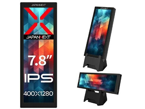 7.8インチのIPSパネルを搭載したモバイルモニターです。解像度400×1280の縦型小型ディスプレイで、優れた携帯性を備えており、専用スタンドを使用することでデスク上でも場所を取らずに設置が可能です。PCと接続して、チャットアプリなど縦表示に適したアプリケーションを常時表示させる用途に最適です。また、スタンドは横向きでも使用できるため、動画視聴など横長コンテンツを表示したい場合には横画面での使用も可能です。シンプルでコンパクトなこのディスプレイは、店舗や商業施設における電子POP用途としてもご活用いただけます。*本製品にはコンテンツ再生のためのプレーヤー機能は搭載されておりません。インターフェイスはUSB Type-C (ハイブリッド) x1、miniHDMI x1を装備します。*miniHDMI接続時にはUSB-C端子からの電源供給が別途必要になります。スピーカーは内蔵しておりません。*Windows 11でのみ動作確認済み。(Apple MacOSではご使用になれません)