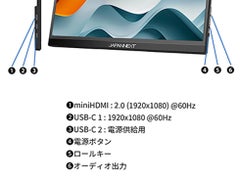 15.6インチのIPSパネルを搭載し、使いやすいフルHD(1920x1080)解像度に対応したモバイルモニターです。上下左右170度に対応した高画質IPSパネルを搭載し、コンテンツを色鮮やかに映し出します。約700gの軽量設計と14mm。大きなディスプレイを設置できない環境においても、手軽にマルチディスプレイ環境を実現いただけます。高精細な画面により、写真や資料、プレゼンテーション時に画面をお見せしたり、など、幅広い用途に対応可能です。モニター背面にキックスタンドを搭載しているので自立して使用することができ、どこでもデュアルディプレイ環境の構築が可能です。また、携帯時に便利なJAPANNEXT特製ポーチを同梱。製品本体をホコリや傷から守り、持ち運びに最適です。入力端子としてハイブリッド対応(モニターへの電源と映像を1本で送信)のUSB-Cを1つと電源供給用のUSB-Cを1つ、さらにminiHDMIを1つ装備します。75mmのVESA規格(2穴)に対応、モニターアームなどにも使用が可能です。ブルーライト軽減モードを搭載し、フリッカーフリー設計で、目と身体への負担を軽減します。2Wx2のスピーカーを内蔵。本製品には、2年間のメーカー保証が付きます。