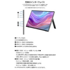 16インチWQXGA(2560×1600)IPSパネル搭載のモバイルモニター。広視野角178°、輝度300cd/m2、sRGB100%対応で外出先での作業に最適です。WQXGAはフルHDより縦解像度が約48%高く、より多くのコンテンツを表示できます。最薄部12mmの薄型軽量設計で、ワーケーションやリビングなど、場所を選ばずマルチディスプレイ環境を構築可能。HDR対応で、明るい部分も暗い部分もリアルに表現します。キックスタンド内蔵で自立し、フェルトケースも付属。USB-C(ハイブリッド対応)2つとminiHDMIを1つ搭載。AdaptiveSync(FreeSync)対応で滑らかな映像を実現。フリッカーフリー、ブルーライト軽減モードで目に優しい。75×75mmのVESAマウント対応、1W×2スピーカー内蔵。2年間のメーカー保証付き。