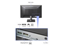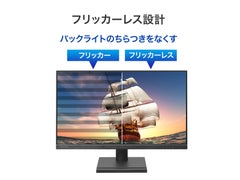 輝度:250cd/m2/応答速度:4ms/最大消費電力:25W/■100Hz対応の23.8型のワイド液晶ディスプレイです。100Hzに対応しているので残像感が抑制され、視認性が向上します。「DisplayPort」「HDMI」の入力端子を搭載し、ケーブルも標準添付しているので、さまざまな機器と接続して使用できます。3辺フレームレスパネルを採用。■一般的な60Hzのディスプレイより、約1.6倍高速に映像が書き換わります。画面のスクロールもスムーズになるため、残像感が軽減され、視認性が向上します。また、激しい動きの映像でもなめらかに楽しめます。※100Hzの出力に対応した機器が必要です。■パソコンとの接続に便利なDisplayPortとAV機器などの接続に便利なHDMI端子を搭載しています。さまざまな機器と接続してお使いいただけます。さらに、DisplayPortケーブル、HDMIケーブルを標準添付しており、ご購入後すぐにお使いいただけます。■パネルとフレーム(枠)による段差がないフラットなフレームレスパネルを採用しました。極細フレームですっきりした印象を与え、マルチディスプレイにもオススメです。スタイリッシュなデザインの液晶ディスプレイは、オフィスにもマッチします。
