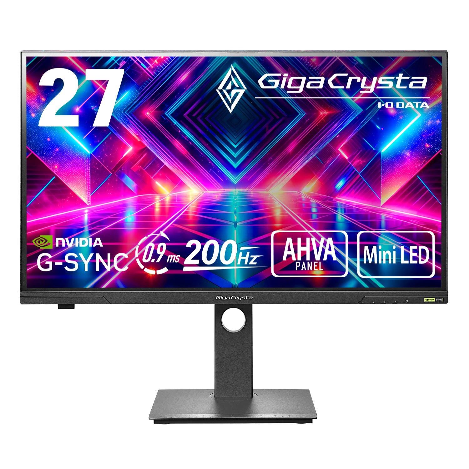 輝度:1000cd/m2/応答速度:0.9ms/最大消費電力:59W/■解像度WQHD、最大200Hzの高リフレッシュレートに対応したMini LEDバックライト採用の27型ゲーミングモニター「GigaCrysta」です。「576ZONEでのローカルディミング」に対応し、さらにDisplay HDR1000に対応することでダイナミックな映像表現を実現。■バックライトにMini LEDをエリア毎に配置し、明部をより明るく、暗部をより暗くするメリハリある表現が可能となりました。バックライトの明るさを局所的に調整する「ローカルディミング」に対応。DisplayHDR 1000認証を取得。■各種色域規格「DCI-P3」のカバー率98%、「Adobe RGB」カバー率100%、「sRGB」カバー率100%(※標準値、アイ・オー・データ機器調べ)と色再現性が高いため、各色域で撮影された動画や写真などのデータを表示する際には、よりリアルな再現表示を行うことが可能となります。■WQHD(2560×1440)対応となりフルHD(1920×1080)と比べて約1.8倍ゲームを繊細に表示することが可能、かつDisplayPort接続時は、最大200Hzの高速リフレッシュレートに対応。FPSなどにおいては敵の視認性向上、追従性向上に役立ちます。