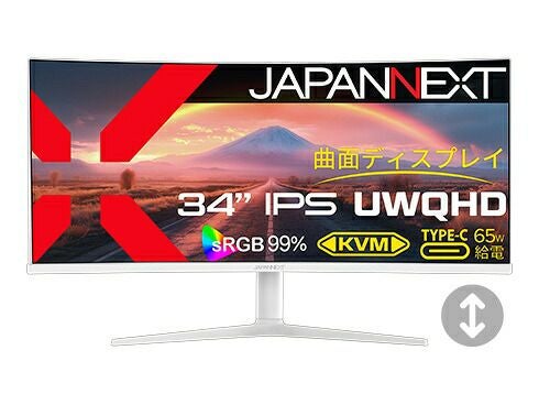 34インチのIPSパネルを搭載し、アスペクト比21:9でUWQHD(3440x1440)解像度に対応した、ホワイトカラーの湾曲ウルトラワイド液晶モニターです。最大輝度300cd/m2。sRGB:99%の広色域に対応。HDR(ハイダイナミックレンジ)は、明るい部分も暗い部分もくっきり表現。最大130mmの範囲で高さ調整を行うことが可能な便利な昇降式スタンドを搭載。また、水平方向のスイーベル、上下の角度調整チルトも可能です。インターフェイスはHDMI、DP、USB-Cを装備。USB-C(最大65W給電)は、モニターへの映像出力とノートPCへの給電が可能。複数の入力を同時に表示する「PBP(Picture by Picture)」に対応、PBPモードでは、最大2つの入力映像を左右同時に表示可能。入力の一つを子画面にて表示する「PIP(Picture in Picture)」も可能です。KVM機能に対応。モニターに接続したキーボード、マウスをノートPCで入力を切り替えた際にもそのまま使用可能です。眼に優しいフリッカーフリー(ちらつき軽減)、ブルーライト軽減モードを搭載します。100x100mmのVESAマウントに対応。3Wx2のスピーカーを搭載しています。本製品には、2年間のメーカー保証が付きます。