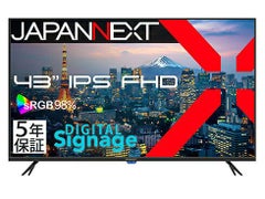 43インチのIPSパネルを搭載した、フルHD(1920x1080)解像度の大型液晶ディスプレイです。あらゆる角度から見ても色やコントラストの変化がおきにくいIPSパネルを搭載し、広視野角上下左右178°を実現します。最大輝度270cd/m2の液晶パネルは、sRGB:98%の広色域に対応し、動画や写真も色鮮やかに美しく表示します。インターフェイスはHDMI1.4 x3を搭載。さらに、USBポートを搭載していますので、デジタルサイネージとしてもご利用できます。USBメモリーを差すだけで、簡単に画像や動画を表示できます。※コンテンツの再生にはリモコンでの操作が必要です。自動再生機能には対応しておりません。また、コンポーネント入力端子 x1、ビデオ/音声入力端子 x1、オプティカル音声出力端子 x1を搭載。200x200mmのVESAマウントに対応しますので、対応の壁掛け金具やスタンドなどに取り付けが可能です。8Wx2のスピーカーを内蔵します。便利なリモコンを同梱。USBからの再生操作や、メニュー操作、音量調整、入力ソース切り替えなどを行うことが可能です。本製品には、5年間のメーカー保証が付きます。なお、2年保証モデル「JN-IPS43FHD2-U」および3年保証モデル「JN-IPS43FHD2-U-H3」も同時に発売となります。
