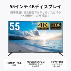 輝度:240cd/m2 応答速度:9.5ms 最大消費電力:140W ▼主な特長【1.高いコントラスト比】5000:1の高いコントラスト比を実現したVAパネルは深い黒を表現でき、動画や映画鑑賞に最適です。【2.上下左右178°の広視野角】見る位置や角度が変わってもバックライトの透過量が変化しにくいため、どこから見ても映像を鮮明に映し出します【3.ナローベゼル】薄いベゼル(ディスプレイの外枠部分)でシームレスなデザインを実現し、より没入感のある映像体験をお届けします。※画面の縁には約6mmの非表示エリアがあります。【4. HDMI x 3とUSBメモリーに保存した動画を直接再生可能なメディアプレイヤーを搭載】HDMI出力端子を持つレコーダーや家庭用ゲーム機などを複数接続できます。また、HDCP2.2で著作権保護されているコンテンツの再生にも対応しています。【5.いろんなアプリや動画コンテンツが楽しめる】Amazonプライムビデオ、Youtube、U-NEXT、NetflixやDMM TV等、様々な動画ストリーミングサービスやゲームなどのコンテンツを4Kの高解像度で堪能できます。※各種動画ストリーミングサービスの利用には別途契約が必要な場合があります。