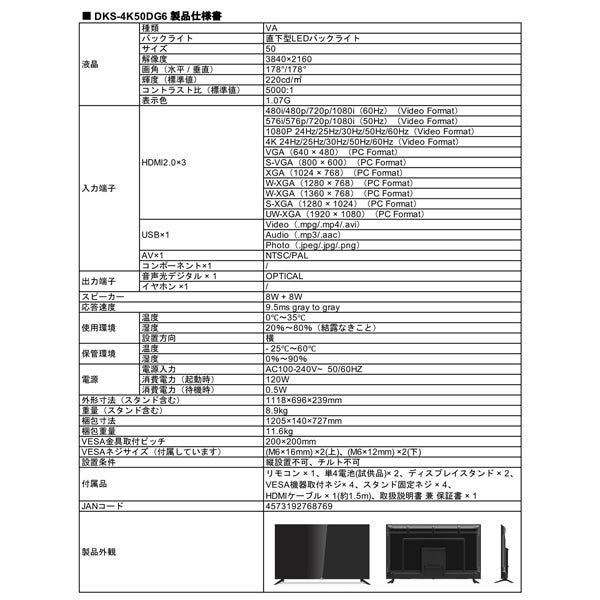 他の画像を見る DMM.make [DKS-4K50DG6] 液晶ディスプレイ 50型/3840×2160/HDMI/ブラック/スピーカー:あり ¥ 51,060 税込 カートに入れる お気に入りに登録する