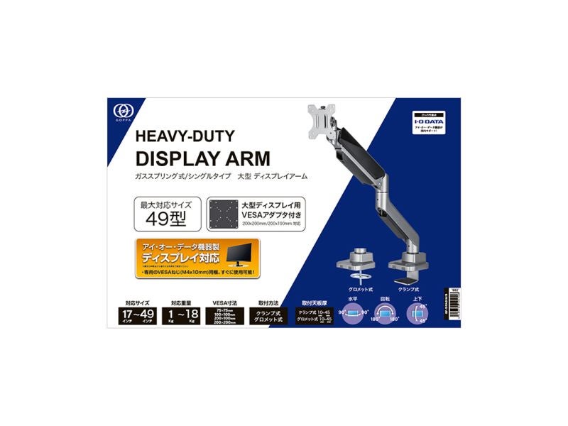 他の画像を見る JAPANNEXT [JN-ARM-FE148DV] 液晶ディスプレイアーム クランプ対応 15-34インチ対応 耐荷重8kg 4画面5軸/2年保証 ¥ 16,465 税込 カートに入れる お気に入りに登録する