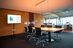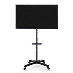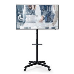 会議を行う仕事場や、学校・塾などの教育現場に最適なディスプレイスタンドです。最大40kgまでのディスプレイを取り付けることができます。使用シーンに合わせて見やすい角度に調整可能です。固定棚にパソコンや周辺機器を置いて、スッキリ収納できます。楽に移動ができるキャスター付です。