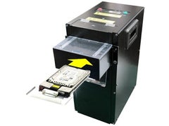 目に見える安心安全な情報漏えい対策!ストレージ物理破壊装置。電動ストレージパンチャーSTPN-30。※HDD/SSD破壊ツールセットを標準装備。より速くて強くて簡単で安全にストレージ媒体を破壊します。破壊する媒体をセ bトして開始ボタンを押すだけの簡単操作。HDDは4穴穿孔、SSDやM.2 SSDや各フラッシュメモリはICチップ破砕、磁気テープは裁断、確実に媒体を破壊します。前面から破壊の様子も目視確認できます。各種破壊ツールを交換すれば、HDD/SSD/m.2 SSD/テープ/スマホなどの様々な媒体の破壊に対応。拡張性に優れています。破壊ツールは前面から簡単に交換!トレイ方式なので破壊する媒体の位置決めや破壊ごみ処理も容易です。破片や変形も比較的少なく、極力原型を留めたリサイクル性を重視した破壊をします。従って、媒体を保管し易く、廃棄業者へ引き渡し時にとても重宝されます。※サーバー向けHDDをそのまま破壊するマウンタ付HDD破壊ポーチ(MPHTY-01B)に対応。サーバー向けHDDの取付金具(マウンタ)を取り外す手間が無いため、更に速くそして効率よく破壊できます。各種破壊ツールセット、搬送ケース、保守サービスなどアクセサリオプション品も充実。