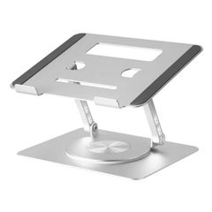 ノートパソコンやタブレットを置ける回転式のスタンドです。360°回転する台座により、会議や仕事中のちょっとした相談など相手と簡単に画面を共有できます。角度調整も無段階で調整可能なため、好みの高さ・角度で使用できます。さらにコンパクトに折りたたむこともできるため、持ち運びにも適しています。