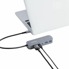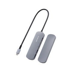 ■USBType-Cコネクターでパソコンに接続しUSB機器やHDMIディスプレイを接続できるドッキングステーション■対応OS:Windows11/10macOS13/12iPadOS16■コネクタ仕様(アップストリーム):USBType-C<USB5Gbps(USB3.2(Gen1))>USBPowerDelivery対応(最大入力100W/最大出力90W)DisplayPortAltmode(USB2.0接続時はUSB2.0互換で動作映像出力非対応)■USBポート(ダウンストリーム):USBType-C<USB5Gbps>×1※データ通信専用映像出力非対応/USBType-C×1<最大出力90W>※充電専用USBPowerDeliveryポート/USBStandard-A<USB5Gbps供給電力値:2ポート合計4.5W(5V/0.9A)>×2■映像出力ポート(ダウンストリーム):HDMI×1<対応解像度:最大4K/30Hz>■電源方式:バスパワー■ケーブル長:約30cm※コネクター含まず■カラー:シルバー■外形寸法:約W118×D35×H14mm(固定用スタンド・ケーブル含まず)約W118×D35×H21mm(固定用スタンド含む/ケーブル・突起部分含まず)■動作環境:温度5~40℃湿度30~80%※結露なきこと■保証期間:1年間■付属品:固定用スタンド固定用両面テープ×2個