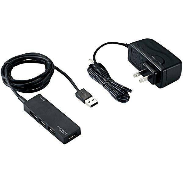商品名:USB2.0ハブ/ACアダプタ付/セルフパワー/4ポート/ブラック