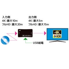 ●4K映像を最大15m延長可能なHDMIリピーター●HDR、HDCP 1.4/2.2対応●ビデオ帯域 18Gbps●USB給電ケーブル(150cm)付属