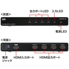 サンワサプライ [VGA-HDRSP4] 4K/60Hz・HDR対応HDMI分配器(4分配)