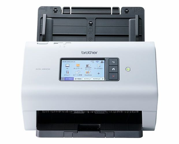 ●ドキュメントスキャナー●対応オプション品:PRK-A4001(ローラーキット)●読取速度:約60枚/分 ※A4原稿モノクロ・カラー共に(解像度300dpi時)●原稿搭載枚数:100枚 ※用紙厚80g/ u紙の場合。枚数は参考値●自動両面スキャン●インターフェイス:USB3.0/有線・無線LAN●4.3型タッチパネル搭載●クラウド対応 ※Brother iPrint&Scan経由またはScanEssentials経由(2022年6月頃対応)でアップロード可能●USBメモリーダイレクト保存可能●スマホ/タブレット連携●A3対応可能 ※A3半折り1枚ずつ●AC電源