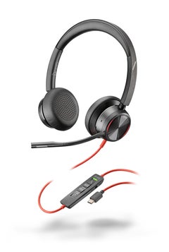 商品名:Poly Blackwire 8225 USB-C+USB-A 変換アダプタ付 両耳 有線モデル ノイズキャンセリングマイク搭載 レザレットイヤークッション