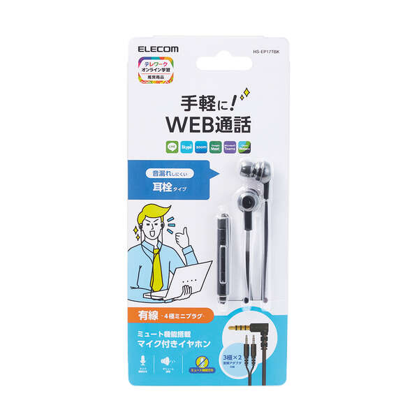 他の画像を見る ELECOM [HS-EP17TBK] インナーイヤー型ヘッドセット/カナル/ミュートスイッチ付/両耳/4極φ3.5mm/変換ケーブル付/ブラック ¥ 2,679 税込 カートに入れる お気に入りに登録する