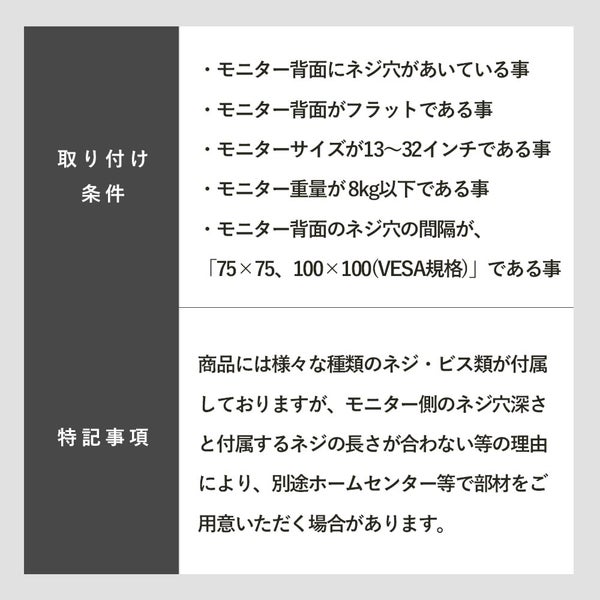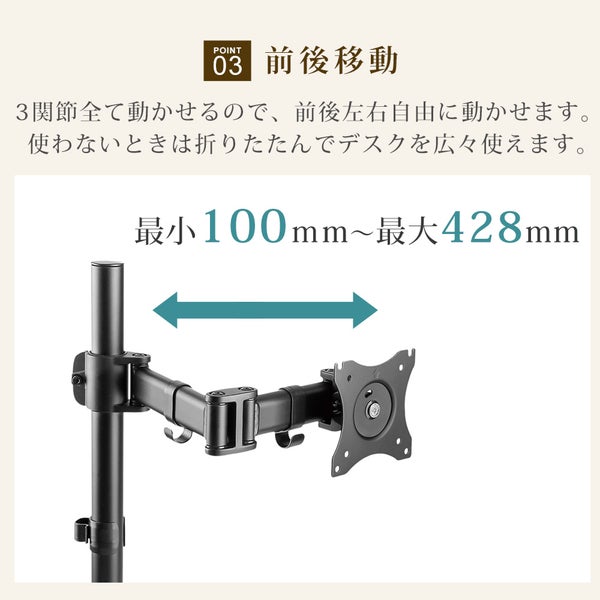他の画像を見る STARPLATINUM [TVSOFNA312B] 快適ワークのモニターアーム 13-32インチ対応 1画面3関節 NA312 ブラック ¥ 3,680 税込 カートに入れる お気に入りに登録する