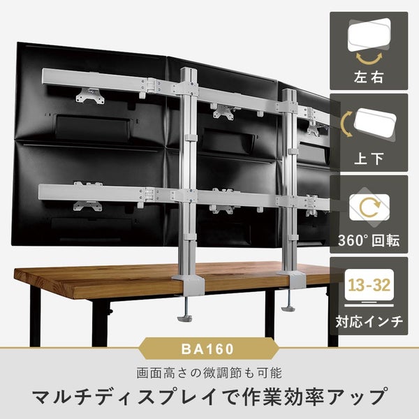 他の画像を見る STARPLATINUM [TVSOFBA160S] 快適ワークのモニターアーム 13-32インチ対応 6画面 BA160 シルバー ¥ 28,800 税込 カートに入れる お気に入りに登録する