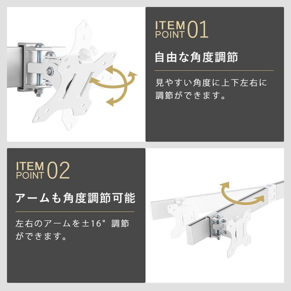 他の画像を見る STARPLATINUM [TVSOFBA120S] 快適ワークのモニターアーム 13-32インチ対応 2画面 BA120 シルバー ¥ 10,297 税込 カートに入れる お気に入りに登録する