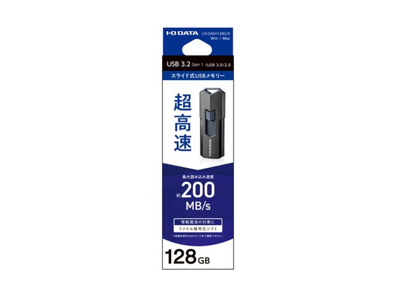 他の画像を見る IODATA [U3-DASH128G/K] USB3.2 Gen1(USB3.0)対応高速USBメモリー 128GB ブラック ¥ 6,480 税込 カートに入れる お気に入りに登録する