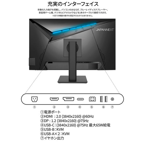 他の画像を見る JAPANNEXT [JN-i28U-C6] 液晶ディスプレイ 28型/3840×2160/DP×1、HDMI×1、USB-C×1/ブラック/スピーカー有/2年保証 ¥ 33,422 税込 カートに入れる お気に入りに登録する