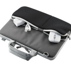 ■肩掛けで楽に持ち運べる、ショルダーベルト付きポケットインナーバッグです。 ■前面にマウスやACアダプターなどの分厚い収納物にも対応できる伸縮ポケットが付いています。 ■収納気室内部には、パソコン本体を傷つけにくい起毛素材を採用しています。 ■外寸(本体部分のみ):約幅335mm×厚み35mm×高さ240mm ※外形寸法は、端末を収納していない状態のものです。 ■外寸(ハンドル含む):約幅335mm×厚み35mm×高さ290mm ※外形寸法は、端末を収納していない状態のものです。 ■内寸:約幅304mm×厚み21.5mm×高さ212mm ※参考収容寸法 ■重量:約390g ※ショルダーベルト含む ■材質:ポリエステル、クロロプレンゴム、低反発ポリウレタン ■カラー:ブラック ■対応モデル:~11.6インチ ノートパソコン ■ポケット(前面):小物ポケット×2 ■PC収納部内 。備考:※参考収容寸法はあくまで参考値です。特殊なパソコンや収納ケースをつけた状態において収納できない場合があります。お買い上げになる前にお使いのノートパソコンサイズと当製品の収納寸法をご確認ください。 ■表面加工:撥水加工 ■その他:ハンドル部耐荷重:30kg ■付属品:ショルダーベルト