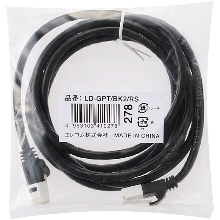 他の画像を見る ELECOM [LD-GPT/BK2/RS] RoHS指令準拠LANケーブル/CAT6/爪折れ防止/2m/ブラック/簡易パッケージ仕様 ¥ 455 税込 カートに入れる お気に入りに登録する