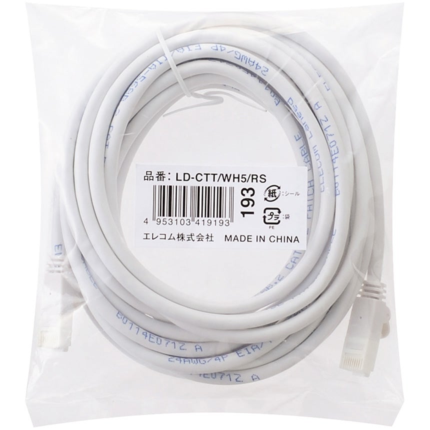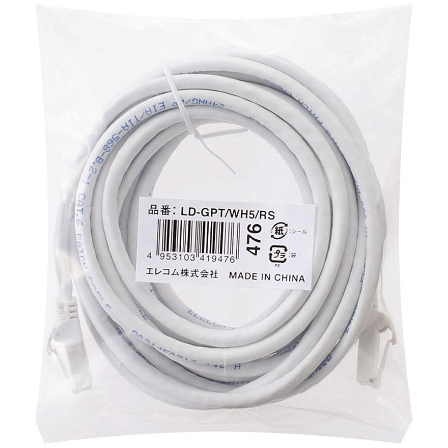 他の画像を見る ELECOM [LD-GPT/WH5/RS] RoHS指令準拠LANケーブル/CAT6/爪折れ防止/5m/ホワイト/簡易パッケージ仕様 ¥ 710 税込 カートに入れる お気に入りに登録する