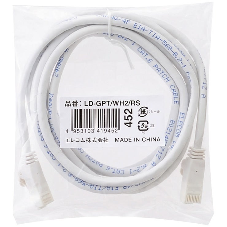 他の画像を見る ELECOM [LD-GPT/WH2/RS] RoHS指令準拠LANケーブル/CAT6/爪折れ防止/2m/ホワイト/簡易パッケージ仕様 ¥ 599 税込 カートに入れる お気に入りに登録する