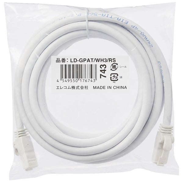 他の画像を見る ELECOM [LD-GPAT/WH3/RS] LANケーブル/CAT6A対応/EU RoHS指令準拠/爪折れ防止/簡易パッケージ仕様/3m/ヨリ線/ホワイト ¥ 760 税込 カートに入れる お気に入りに登録する