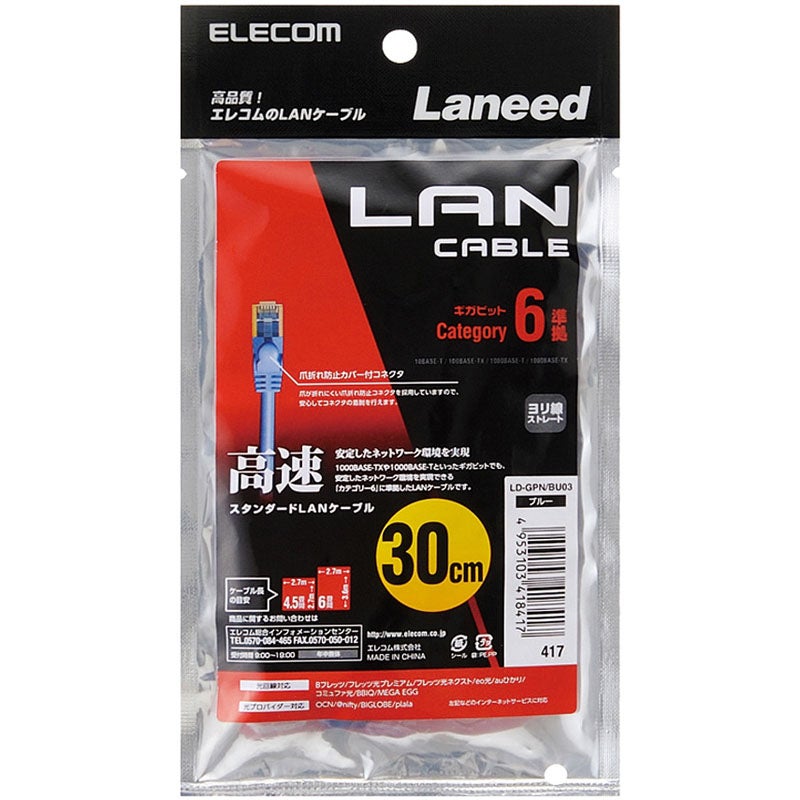 他の画像を見る ELECOM [LD-GPT/BU3/RS] RoHS指令準拠LANケーブル/CAT6/爪折れ防止/3m/ブルー/簡易パッケージ仕様 ¥ 508 税込 カートに入れる お気に入りに登録する