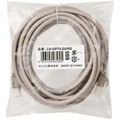商品名:RoHS指令準拠LANケーブル/CAT6/爪折れ防止/5m/ライトグレー/簡易パッケージ仕様
