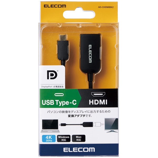 他の画像を見る ELECOM [AD-CHDMIBK2] USB Type-C映像変換アダプタ/USB Type-C to HDMI/30Hz/ブラック ¥ 3,230 税込 カートに入れる お気に入りに登録する
