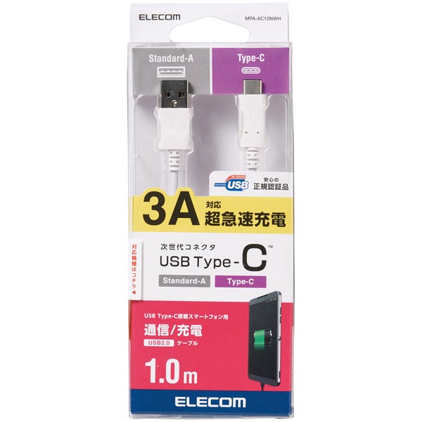 他の画像を見る ELECOM [MPA-ACL12NWH] USB Type-Cケーブル/スマホ用/USB(A-C)/認証品/L字コネクタ/抗菌・抗ウイルス/1.2m/ホワイト ¥ 1,280 税込 カートに入れる お気に入りに登録する