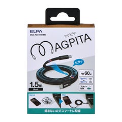 商品名:マグピタ マグネットUSBケーブル 平形 フラット PD60W C to C 1.5m ブラック