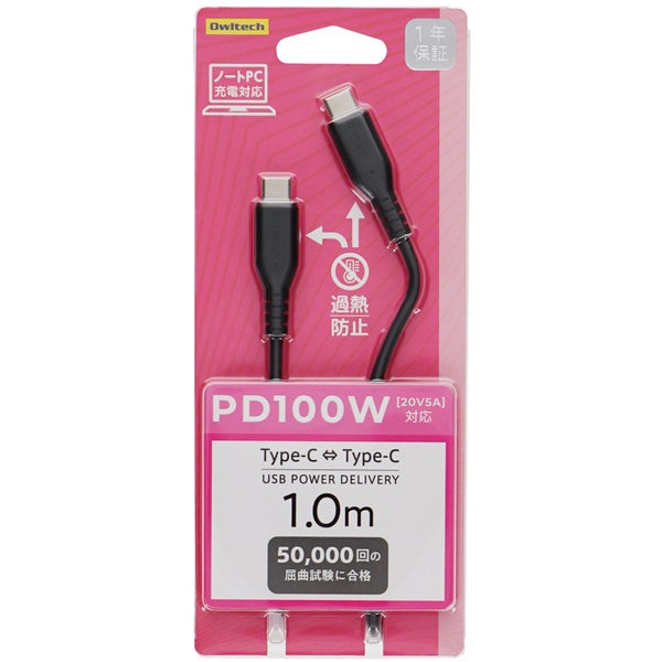 他の画像を見る オウルテック [OWL-CBKGBCC10-BK] スマホ・タブレット用USBケーブル/USB(C-C)/Power Delivery対応/PD100W/eMarker+Mini-Breaker搭載/過熱防止機能搭載/断線に強い/1m/100cm/ブラック ¥ 1,691 税込 カートに入れる お気に入りに登録する
