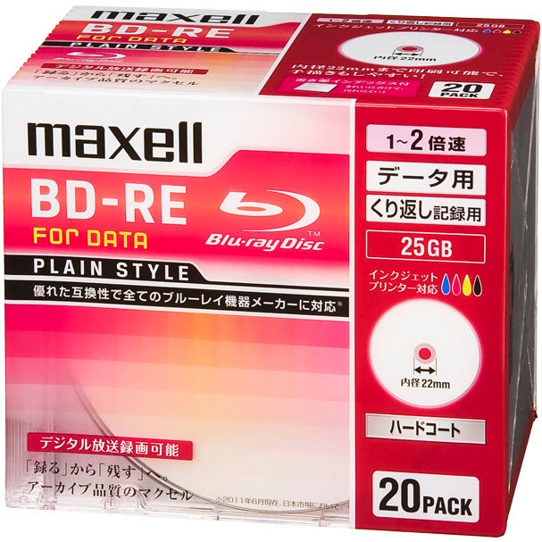 他の画像を見る Maxell [BE25PPLWPA.20S] データ用ブルーレイディスク BD-RE 25GB 「PLAIN STYLE」 (1~2倍速対応) インクジェットプリンター対応 (20枚パック) ¥ 2,440 税込 カートに入れる お気に入りに登録する