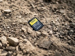 ハードな現場で活躍するSDXC/SDHC UHS-II SDメモリーカード「SF-Gシリーズ タフ仕様」。SDメモリーカードで初の一体成型。曲げ強度18倍、落下5mの試験をクリアする強靭性。最高等級の防水性(IPX8)、防塵性(IP6X)。リブやライトプロテクトスイッチをなくし破損を防止。。世界最速の書き込み速度299MB/sと、読み出し速度300MB/sを実現