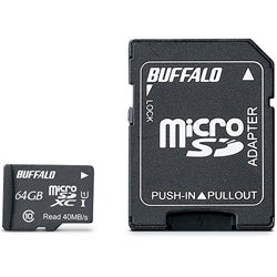 ●リード最大40MB/sの高速転送●UHSスピードクラス1に対応。対応機器との高速転送を実現。●防水性能を示す規格「JIS防水保護等級7(IPX7)」準拠。●スマートフォンや携帯電話などさまざまな機器に対応●付属の変換アダプターを使用することで、microSDHCだけではなく、SDHCにも対応(64GB)●書き込みを禁止してデータを守る「誤消去防止スイッチ」●SDMI規格準拠●RoHS基準値準拠