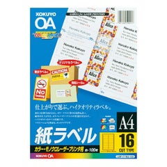 コクヨ [LBP-F7162-100N] カラーLBP&PPC用 紙ラベル A4 16面 100枚